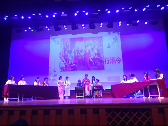 会外校之芳园,咏经典之乐事。丽人行舞,皆称曼妙,佳人咏歌,亦为清籁。今为读书之佳节,此处应有盛宴伴。——这是高二3班的《盛宴》。好看:那个皇帝好威风,老师直夸选角好;飞花令起书声琅,齐诵改版《春日宴》。