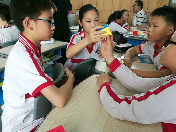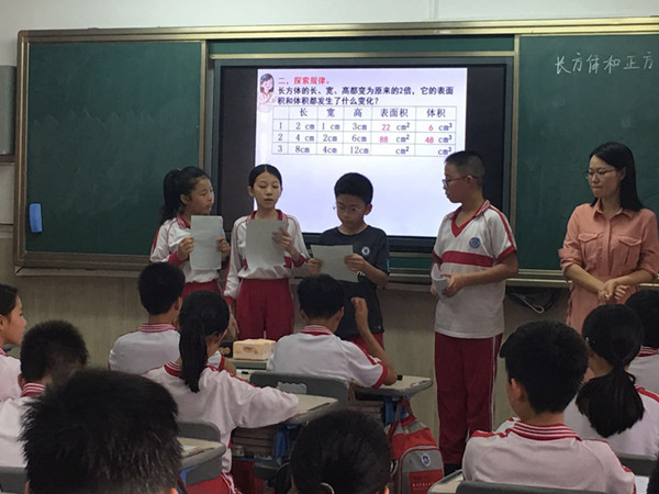 4月8日下午,依照惯例小学部高段数学组下午继续开展了每学期一直以来的听课活动,全体高段数学组老师参加了这一活动。下午大家首先观摩了张牧玉老师执教的思维拓展课《探索图形》和肖荣荣老师执教的练习课《长方体和正方体的练习》。