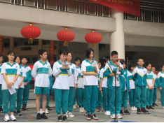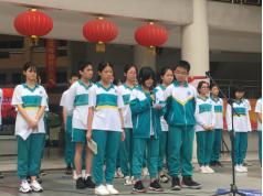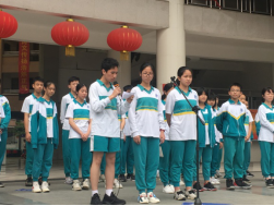在本周周三大课间,初二2班主持了主题为《榜样的力量》的年级晨会。