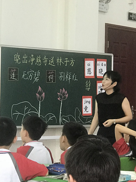 此次比赛以古诗教学为主,针对统编教材二年级下册的两首古诗进行同课异构的方式教学。课堂上,蓝老师通过古诗学习“四读”法,带领学生在古诗的世界里遨游、吟诵。整节课如行云流水,让人沉醉。最终,蓝老师以扎实的基本功和独特的教学风格征服了在场的评委老师们。