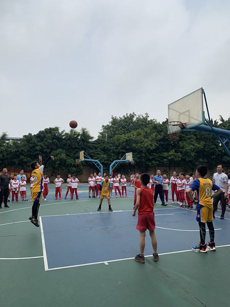 小学生进入高段年级学习后,有强烈的好胜心和竞争意识,但缺乏团队合作意识和抗压能力,篮球比赛就能很好地注入和锻炼这种精神品质。所以,我校小学部的体育课程里,在进入高段体育课学习时,就增加了球类运动的学习内容比重。经过两年的学习,学生已经有了一定的篮球基础,掌握了运球、投篮、传接球、简单战术配合等篮球技能,每个学期的体特课期末都要进行考核,考察学生掌握的程度。