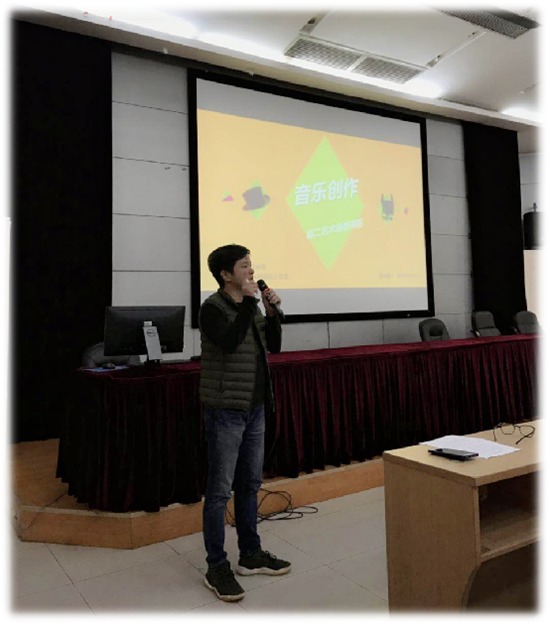 此门选修课程由杨金龙老师任教,杨老师将通过学习音乐基础知识、感受音响效果,引导学生通过现实生活中的具体对象、思想、情感、意境等转化为由乐音为主所构成的音响。并通过分析、判断、提炼,自己的重新设计、安排、想象等创作属于自己的音乐。