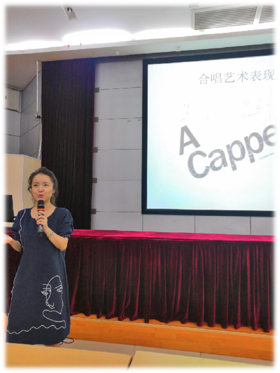 此门选修课程由胡丹老师任教,胡老师将通过正确发声训练、演唱的力度、演唱速度与表情的把握、声部的组合、音色的运用以及音区的选择方面等方面,引导学生感受这种古老的、 高雅的、具有极高形式美的多声部声乐艺术形式。