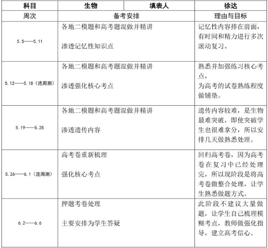 4、期中后开始进行一轮复习,做好复习备考工作。