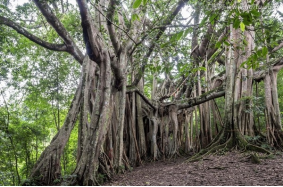 一进华南植物园,老师给我们介绍的第一种植物便是榕树。榕树是华南常见树种,然而榕树的秘密却不得而知,榕树有发达的气生根,可以形成支柱使榕树呈现独木成林的景观;榕树发达的板状根对榕树起到加固防倒伏的作用。最奇妙的是榕树和榕小峰的互利共生关系。为什么我们吃无花果的时候会见到小虫子?答案就在这里。