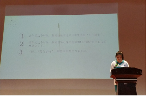 本班王紫衡同学作为主持之一开始了家长的序幕。期中考试优秀学生代表分享了自己学习的个人方法。初中部主任,年级主任分别介绍了同学们的学习情况和以后学习的要求。高中部和国际部的主要领导介绍了广外外校高中的特点,优势,以及就读本校高中部的方式方法以及前景。看到了过去的高中同学的毕业去向,让大家对孩子们的未来充满了憧憬。后面校长总结了过去半学期的工作,对下半学期的工作也做了交代,希望家长和学校更加注重孩子的教育,更加努力,让孩子们变得更加优秀。