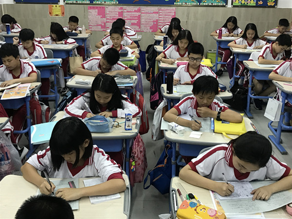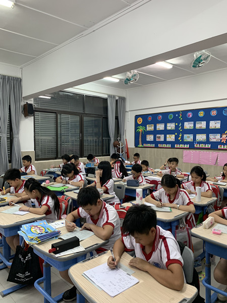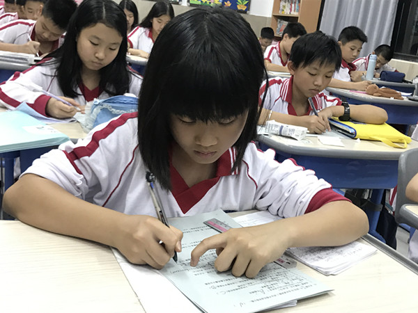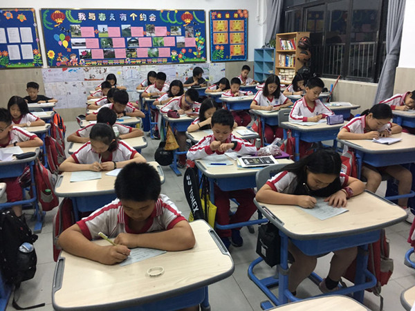 2019年5月14日晚上孩子们全神贯注的投入比赛中,整个楼层只能听到孩子们刷刷地写字声。请看图片