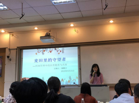 曾静兰老师引用《麦田里的守望者》中的一句话“我只想当个麦田里的守望者。我知道这有点异想天开,可我真正喜欢干的就是这个。我知道这不象话。”我们看到了她不忘的初心。叙述中她用两个教育案例——座位风波、作业拖延症,让我们感受到她是一位满怀理想,追求完美,脚踏实地,智慧建班的守望型老师。她深有感触的说:“教育即成长。 这个成长既包括学生也包括老师。 老师在从事教育管理的过程中,不断的学习、丰富教育手段、完善教育理念,从而实现自我成长,而只有当老师不断成长,才能更好的教育学生、帮助学生成长,实现他育。自育+他育=共育。”