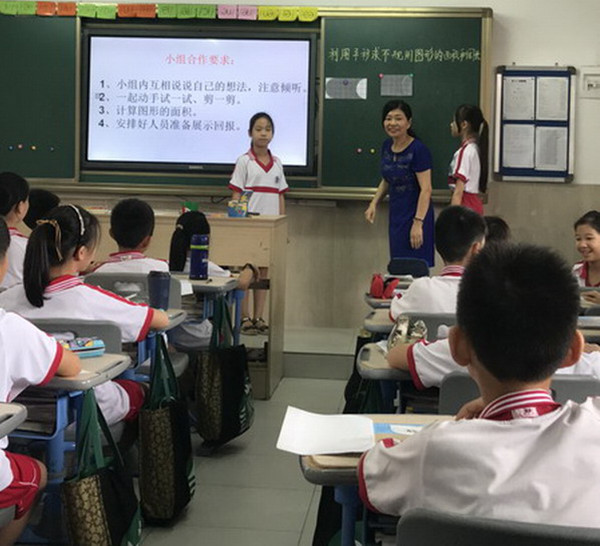 2019年5月20日,这是个特别的日子,我们四年级备课组的张小会和李沛娜两位老师执教的公开课《利用平移求不规则图形的面积和周长》如期举行。为上好这节课,两位老师都在身体患病的情况下课前认真地精心选材、备课,共同研讨,她们选择学生熟悉的感兴趣的素材,让学生感到对比较抽象的数学知识学习起来也是生动的、有趣的,而不是乏味的。两节课的课堂上孩子们思维活跃,学习氛围轻松愉悦,非常富有成效。 在5月20日这个不同以往的日子,她们把特别的爱献给了特别的孩子们!