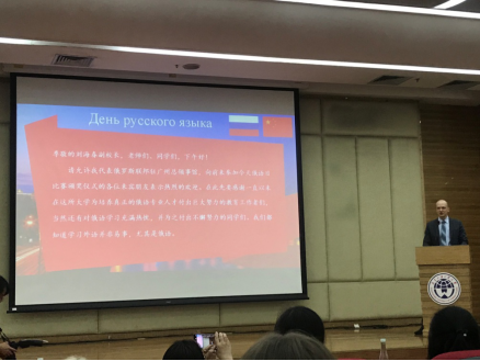 每年6月6日是由联合国确定的“俄语日”,今年正值中俄建交70周年,俄罗斯联邦驻广州总领事馆与广东外语外贸大学西方语言文化学院、俄语中心于2019年5月23日在广外北校区共同举办了第九届“俄语日”暨庆祝中俄建交70周年征文比赛颁奖仪式。