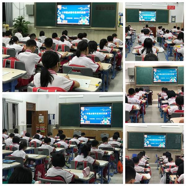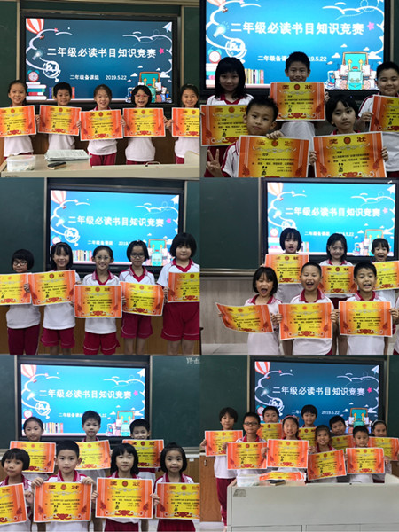 阅读评价对于阅读的重要性也是不容忽视的,阅读检测无异于为阅读工作装上了“质量检测机”和“健康修复机“,即:科学检测,及时反馈,全面诊断,有效调控。5月22日周三晚7:00,二年级同学在各班教室举行了年级必读书目知识竞赛。