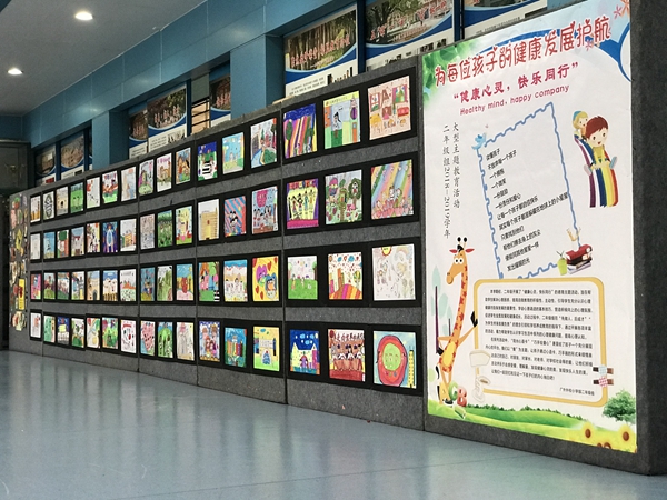 手抄报、心语书签是学生获得知识信息,培养综合能力的有效途径,也是学生最喜爱的朋友。二年级学生在美术老师的指导下,完成一期以“心灵阳光”为主题的手抄报比赛。三年级的橱窗里,展览孩子们图文并茂的作品,更展现了他们阳光向上的心灵。