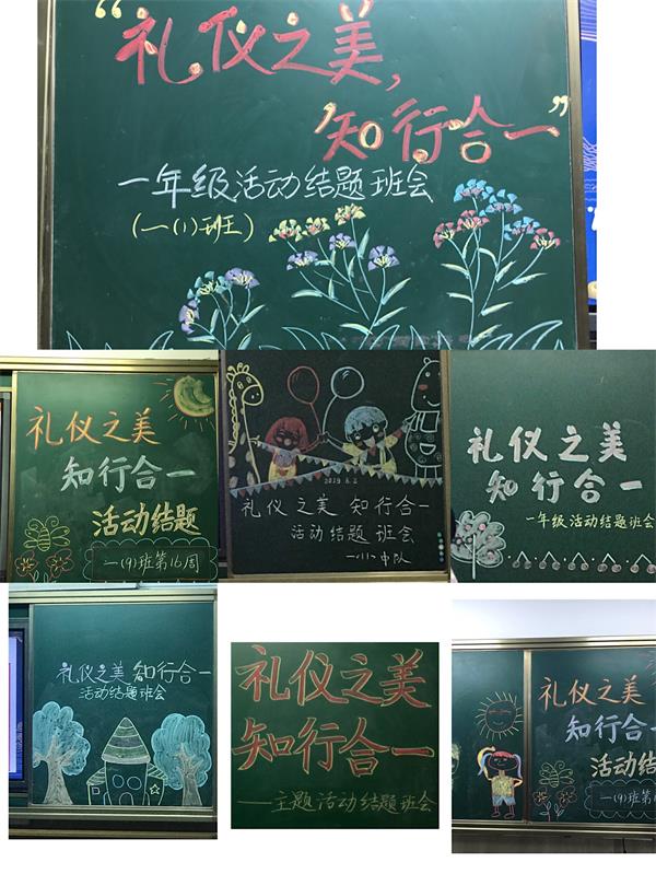 儿童节刚过,处处还洋溢着欢快的气氛,孩子们的笑容格外灿烂。6月2日晚上,一年级的师生们在各班举行 “礼仪之美 知行合一”年级主题活动的结题班会,每个班都精心布置好了班会主题。