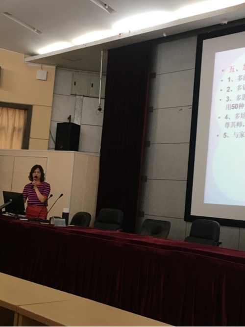 三人经验交流后,李主管也做了她的经验分享。她介绍怎样抓好常规、精细管理,生活老师要精确定位自己职责要求,明白要怎样做好一名生活老师。她指出我们每个人要具备德育敏感度、善于用生活琐碎育人,把生活琐碎上升一个高度来教育学生,并举了一些具体事例分析。