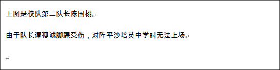 颜中第三位队员缓缓走向罚球点,等待这哨声响起,门将陈子和双眼紧盯皮球,额头上密布着汗珠——哨声响起。伴随着对方的助跑,陈子和憋住一口气,摆好姿势等待射门,只见对方猛一摆腿,皮球咆哮着向球门左上角飞来,球速之快,时间之短只够门将抬起手,仅仅用指尖碰到球,也就是这指尖的一碰,让飞向横梁下沿的皮球击中了横梁,弹出几米远…刹那间全场沸腾了!外校的队员们欢呼着,冲向门将,一同拥抱庆祝。