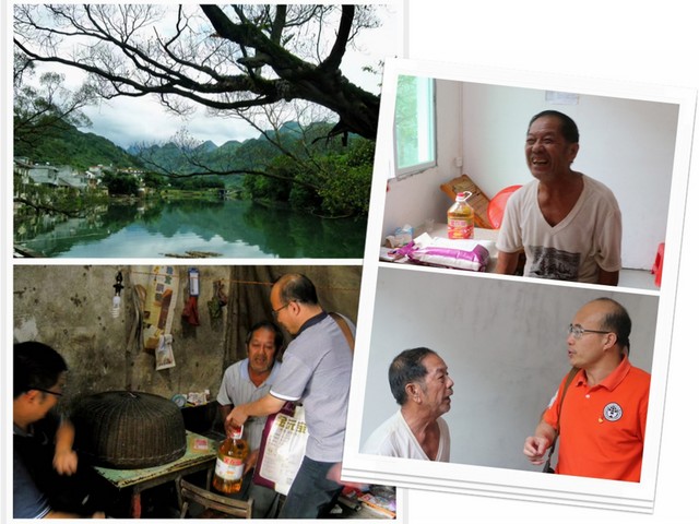 早上一场雨,天气比前两天凉快了一些。说来也怪,前两年跟书记去扶贫也是这样,明晃晃的烈日当空,突然就下起小雨来。一路顺利抵达阳山县城。黄书记指着前方的分岔口说到:“这里下去是一家低保老人,没有儿子只有一个女儿,又离得比较远照顾不了,老人只能靠自己打打渔为生。”