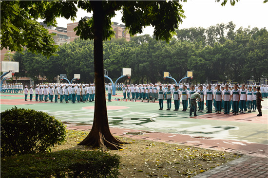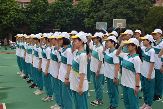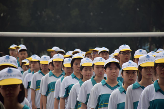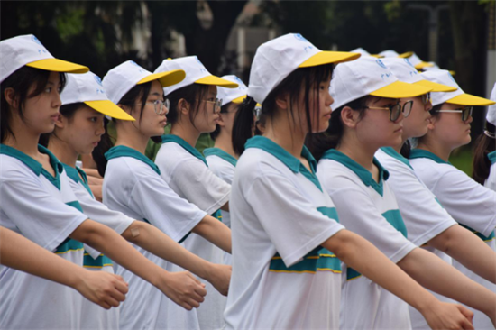 雨水冲刷掉了盛夏的闷热,带来了早晨片刻的丝丝凉意,可惜上午的艳阳高照却用毒辣阳光将它狠心驱逐。但酷热的天地也抵不住同学们满腔的热情与高昂的斗志。“立正!”“稍息!”“向左转!”教官们的一声声命令连同着同学们的口号与跺脚声传向天空,颇有几分欲与天地争高低的意味。