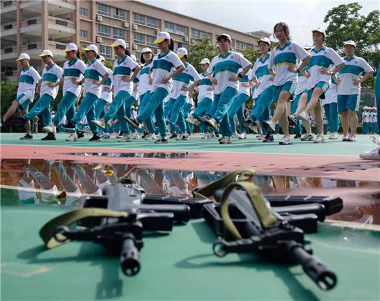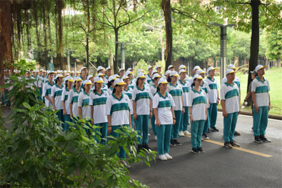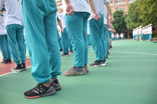 干脆、整齐的脚步声截然踩碎了滑落空中的汗珠,也踏裂了我们仅剩一点的娇气。短短的两天时间,我们一改假期的慵懒,投入到紧张有序的训练中去。