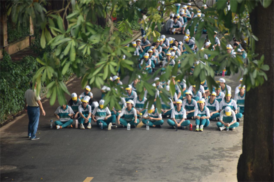 严格的要求,湿透的衣服,酸痛的肌肉,大家咬着牙,在一次次的苦苦坚持中实现了意志的磨练。每一次站军姿,从5分钟到15分钟,从15分钟再到30分钟,都是进步;每一次转身,从摇晃到笔直,从立定的参差到整齐,都是超越;每一次起步走,从缩头缩脚到昂首阔步,从队伍三三俩俩到贝联珠贯,都是集体默契的滋长。