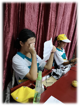 待同学们落座后,冉老师就把冰凉可口的西瓜分给了同学们和教官。紧接着,我们又一起观看了一个视频,伴随着优美的音乐,这个视频把父母如何陪伴我们成长的故事娓娓道来,许多同学看到这儿,已然红了眼眶。看完视频,冉老师一脸神秘地让同学们把桌子抽屉打开,每一个抽屉里都有一个信封,同学们都好奇地打开了它。啊!原来这是父母写给同学们的信,同学们纷纷陷入了沉默,专心的读起信来,此时的教室一片寂静。等到同学们读完信抬起头来,发现在不觉间竟已泪流满面。