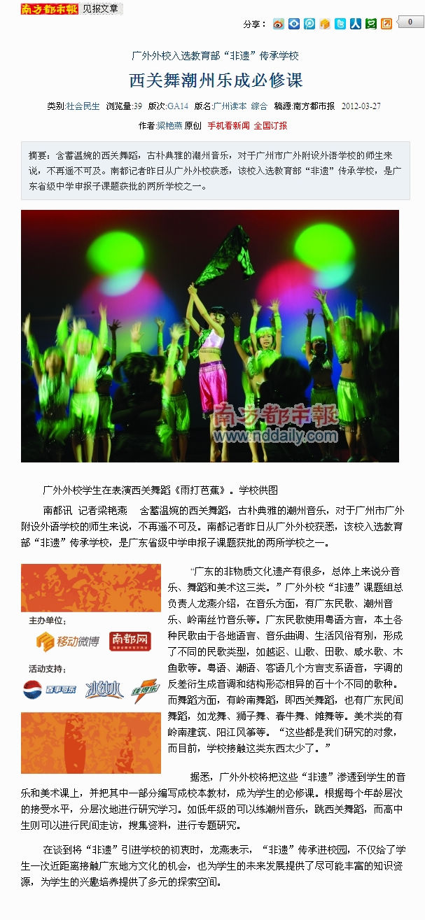 ÄÏ·½¶¼Êб¨£º¹ãÍâÍâУÈëÑ¡½ÌÓý²¿¡°·ÇÒÅ¡±´«³ÐУ