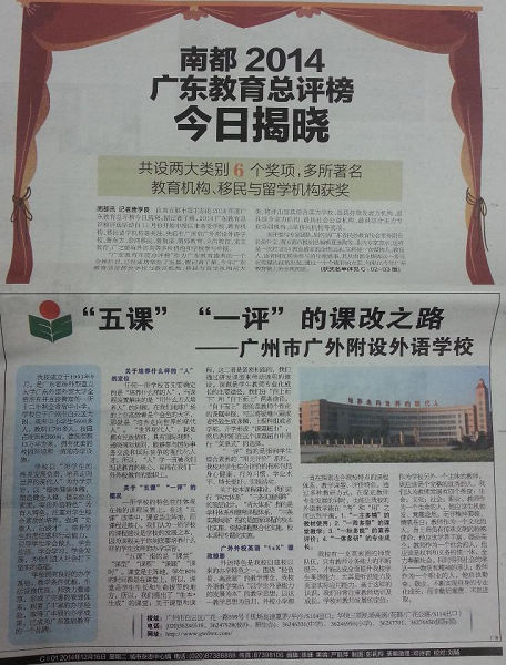 ÓÉÄÏ·½¶¼Êб¨Ö÷°ìµÄ2014Äê¶È¹ã¶«½ÌÓý×ÜÆÀ°ñÓÚ2014Äê12Ôµ׽ÒÏþ£¬ÎÒУÔٴΰñÉÏÓÐÃû¡ª¡ªÈÙ»ñ¡°×î¾ß×ÛºÏʵÁ¦Ñ§Ð£¡±³ÆºÅ£¬ÔÚ12ÔÂ16Èյġ¶ÄÏ·½¶¼Êб¨¡·ÉÏÒÔ¡¶¡°Îå¿Î¡±¡°Ò»ÆÀ¡±µÄ¿Î¸Ä֮·¡·ÎªÌ⣬¶ÔÎÒУµÄ¡°¿ÎÌᢿÎÐÍ¡¢¿Î³Ì¡¢¿Îʱ¡¢¿ÎÌ⡱¸Ä¸ï½øÐÐÁËÈ«·½Î»µÄ½éÉÜ£¨ÈçÏÂͼ£©¡£