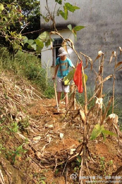 这位同学今天赤脚下水田,赤脚捉田螺,赤脚走碎石路,虽然伤痕累累,但是她觉得很开心。