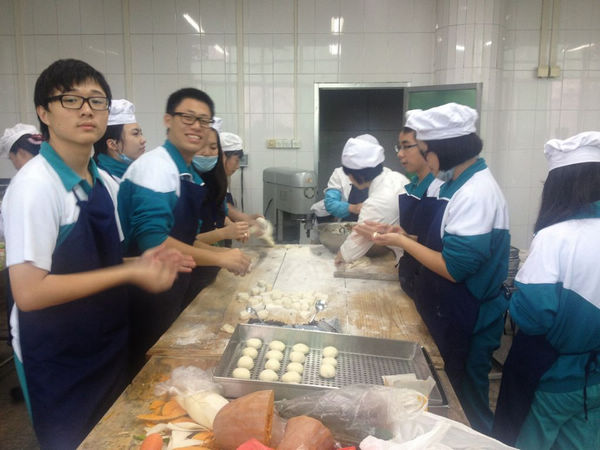天微亮,我们就起身来到第一饭堂吃早饭了。为的是待会在早餐开餐前赶到第二饭堂为同学们打早餐。吃完早饭后,乘着零星的小雨,我们一行人来到了饭堂。同学们已经陆续到来了,一到饭堂我们就被安排去打早餐。这半小时过去了,同学们也吃完回到课室去,我们便开始了新的工作。首先是打鸡蛋,我们打了两箱鸡蛋,这十几分钟里手也累得有点僵硬了。接着便是掰木耳、掰青椒头、剥白菜、切腐竹、切马铃薯、切韭菜还有洗葱。陆陆续续做完这些相对简单的工作之后时间已经过去两个多小时,距离开餐还有一个小时了。中午打饭,原本以为那是一件十分轻松的事情,经过实践才知道,一直站三十分钟不停打菜,手是十分劳累的,不过换来同学的谢谢是十分安慰的。下午我们来到5楼做了点心然后休息了一会儿又开始新一轮打菜的工作。通过这次社会实践,我们体会到其实平常厨师的工作是十分辛苦的。我们平常在饭堂吃饭应怀着一颗感恩的心,包容厨师们的小小不足。每一份工作都是辛苦的,我们应该努力完成认真对待。