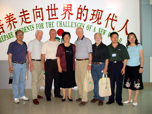 6月30日,美国杜肯大学商学院院长斯多德,教育学院系主任伯隆一行五人,在广东外语外贸大学国际交流处处长梁学宏、国际学院院长陈林汉等陪同下访问我校,校长刘世平、副校长王秀民接待了来宾。 斯多德一行参观了课室、学生宿舍、食堂等场所,并来到初二(6)班和学生们进行了交谈。他们对我校的办学成绩表示赞叹,并初步达成了进一步加强交流与合作的意向。