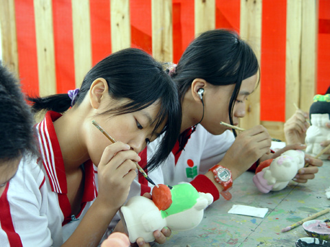 在陶艺中心,同学们各展手艺“玩”泥巴,一团团陶泥被孩子们尽情“蹂躏”,变出漂亮的羊,蹩脚的马……两个小时的时间,捏泥、拉坯、上色,手忙脚乱,不亦乐乎。陶艺是需要细心和灵性的艺术,尽管大多数同学只是初次接触,可他们的作品还是让中心的老师啧啧赞叹不已:这个篮子是由一根一根细泥条叠成,像不像藤条筐?还在外面贴上一朵朴稚的小花,真是俏皮又别致。拉坯是个技术活儿,有人几天还做不好呢!我们的这个花瓶是不太圆滑,好像还有点儿歪。嗯,你没见那些大艺术家的作品都这样怪怪的吗?好了,我们再在花瓶上刻几个字“六(一)班留念”,很有纪念意义噢。活动结束,作品架上摆满了同学们一排排形态各异的作品,或憨稚,或秀气,或朴拙。这些作品都将被烧制成真正的陶器,给孩子们留下美好的回忆。同学们的巧手慧心在这次活动中得到了充分的体现。其中一部分同学表现特别优秀,获得了“优秀学员”的称号。