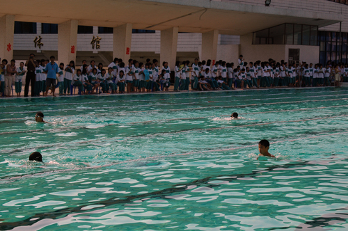 为了使学生掌握“求生、救生、养生”的一般技能,为他们的终身体育创设平台,中学部体育组与2005年5月24日至26日举办了外校第三届“飞鱼”游泳比赛。 本次比赛共有270名运动员参赛,共开设50米碟泳、仰泳、蛙泳、自由泳、4x50混合泳接力5大项。