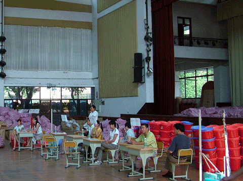 8月28日,是中学部开学的日子。经过几天紧张的忙碌,开学工作一切准备就绪。初一、高一和高二的班主任老师从一清早开始,就在教学楼下的大厅里准备迎接报到的同学们。生活老师也在风雨球场内准备为初一、高一的新生发放生活、学习用品。教室和学生宿舍也都装饰一新。