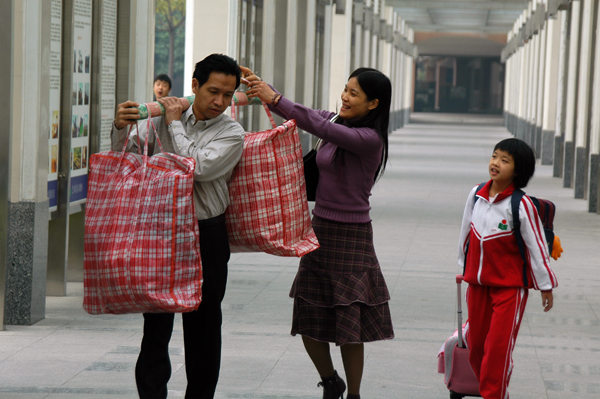随之呈现在大家面前的是一道熟悉的风景:孩子们脸上挂着喜悦,心里揣着梦想;家长们肩上扛着被褥,手里提着行囊。