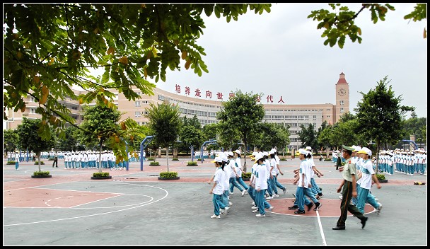 在经历过一次军训之后,初二年级的学生已经对眼前的一切不再陌生,即使是再柔弱的女生,他们的目光中也透露着坚毅。