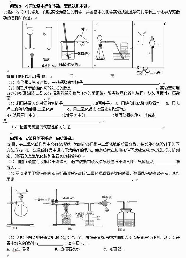 首先要对试卷进行认真的分析,找出学生的对化学知识的疑点、盲点。杨元辉老师的试卷讲评课,这一点做得非常好。她首先找出了学生答题存在下列问题: