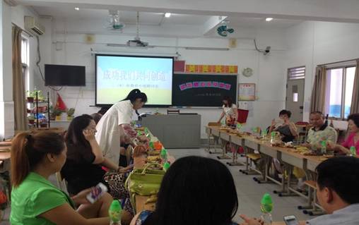 首先特别感谢为这次家长会的召开而筹划的魏老师及家委会(图为家委会在筹划会议工作,为每位与会的家长准备矿泉水及水果等),感谢他们的付出!
